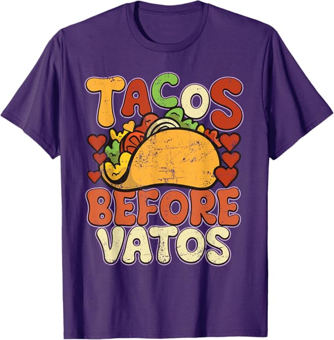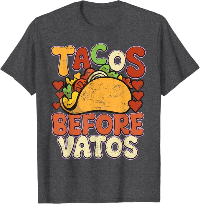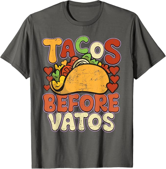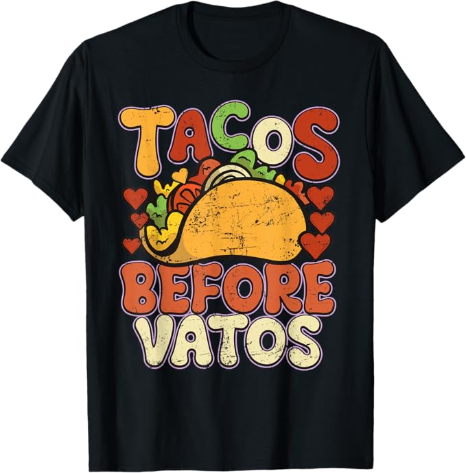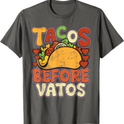 - Celebrate Chicano Pride: Show off your love for the Chicano culture with this bold and humorous “Tacos Before Vatos” design, perfect for proud Mexican men and women who appreciate their heritage and enjoy a good laugh.