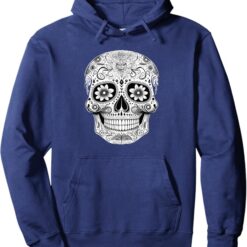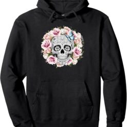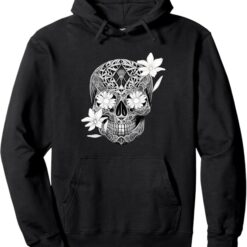 Floral Sugar Skull Pullover Hoodie – Day of the Dead Mexico Día De Los Muertos Design
