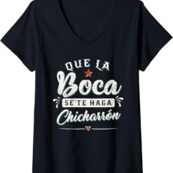 Funny Women’s ‘Que La Boca Se Te Haga Chicharrón’ Mexican Latina V-Neck Women T-Shirt