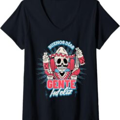 Funny Women’s Buenos Dias Gente Infeliz Chicano Mexican V-Neck Women T-Shirt
