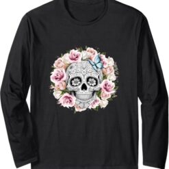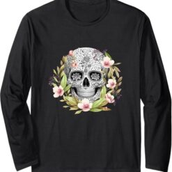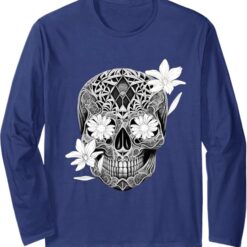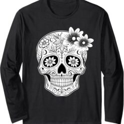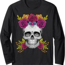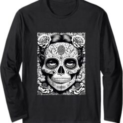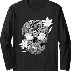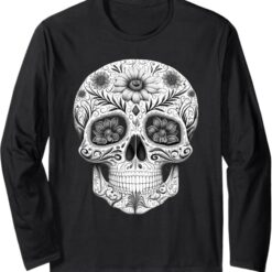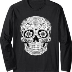 Dia de los Muertos Sugar Skull Long Sleeve T-Shirt – Mexican Day of the Dead Apparel