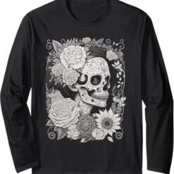 Floral Sugar Skull Dia de los Muertos Day of the Dead Mexico Long Sleeve T-Shirt