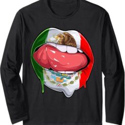 Mexico Flag Lips Long Sleeve T-Shirt – Mexican Bandera Como Labios Design