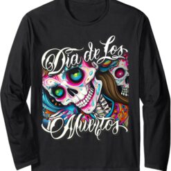 Mexican Calaveras Flower Skull Dia De Los Muertos Long Sleeve T-Shirt – Day of the Dead Shirt