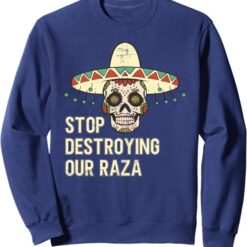 Stop Destroying Our Raza Mexican Chicano Skull Hombre Sweatshirt – Bold, Unique Design