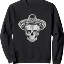 Mexican Sugar Skull Sombrero Sweatshirt – Day of the Dead Calaveras Design