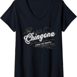 Women’s Chingona Como Mi Madre Mexican Latina Power V-Neck Women T-Shirt