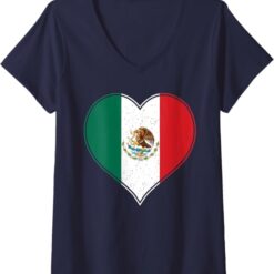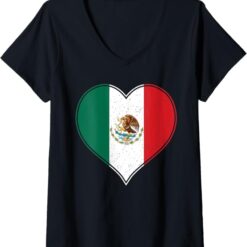 Women’s Corazon Mexicano Mexican Flag V-Neck Women T-Shirt – Camiseta de Bandera de México