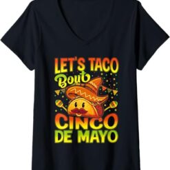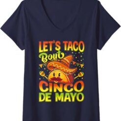 Women’s Cinco de Mayo T-Shirt – Let’s Taco Bout V-Neck Mexican Party Shirt