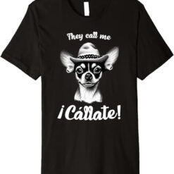Funny Mexican Latina ‘Call Me Callate’ Chihuahua Womens Premium T-Shirt