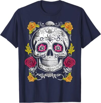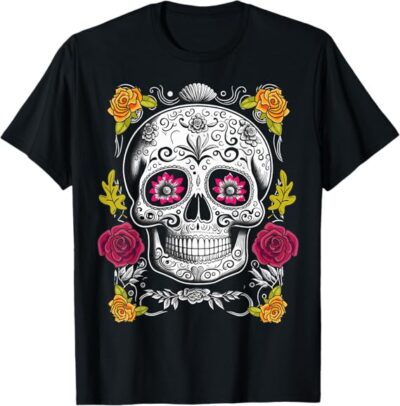 Sugar Skull Mexican Day of the Dead Men T-Shirt – Festive Dia de los Muertos Apparel