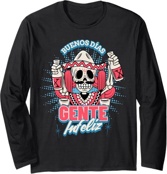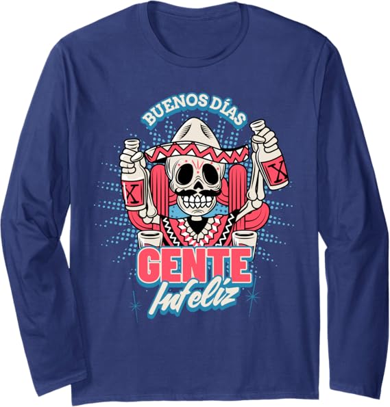 Buenos Dias Gente Infeliz Funny Chicano Mexican Hombre Long Sleeve T-Shirt