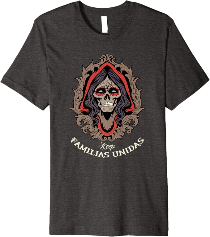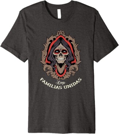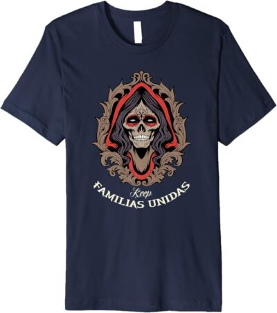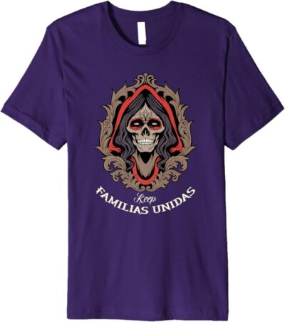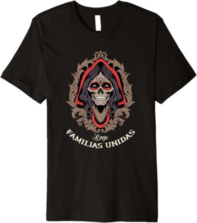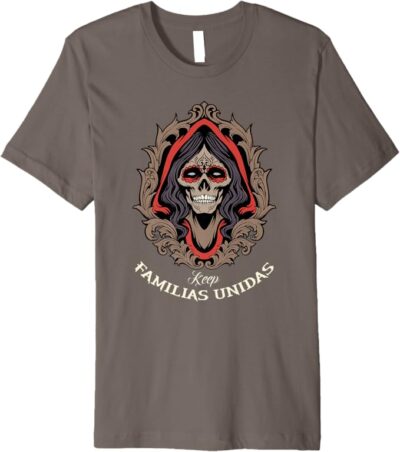 • Show your commitment to family and culture with the “Keep Familias Unidas” t-shirt, featuring a striking Mexican Calaveras skull design that honors both Chicano pride and family unity.