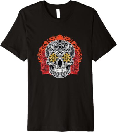 - Celebrate the vibrant traditions of the Day of the Dead with this Sugar Skull Calaveras t-shirt, a beautiful tribute to Mexican heritage and culture.