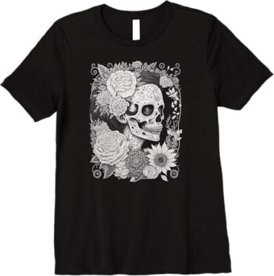 Premium Catrina Sugar Skull Women T-Shirt – Día de los Muertos Calaveras Design from Mexico