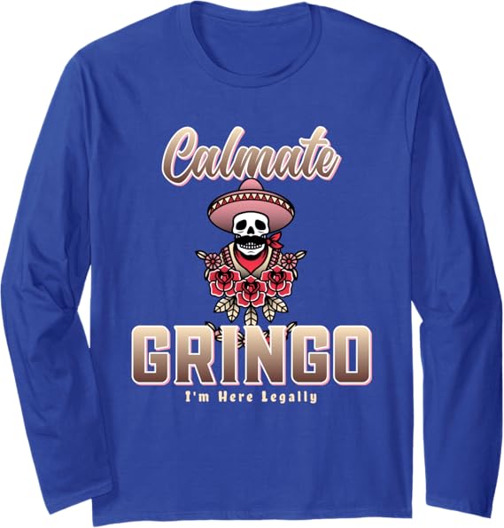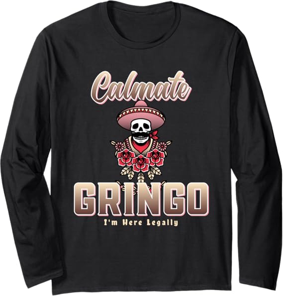Calmate Gringo I’m Here Legally T-Shirt – Funny Mexican Chicano Long Sleeve Shirt for Men & Women