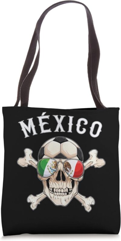 Mexico Pirate Soccer Fan Skull Tote Bag with Mexican Flag Design