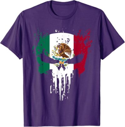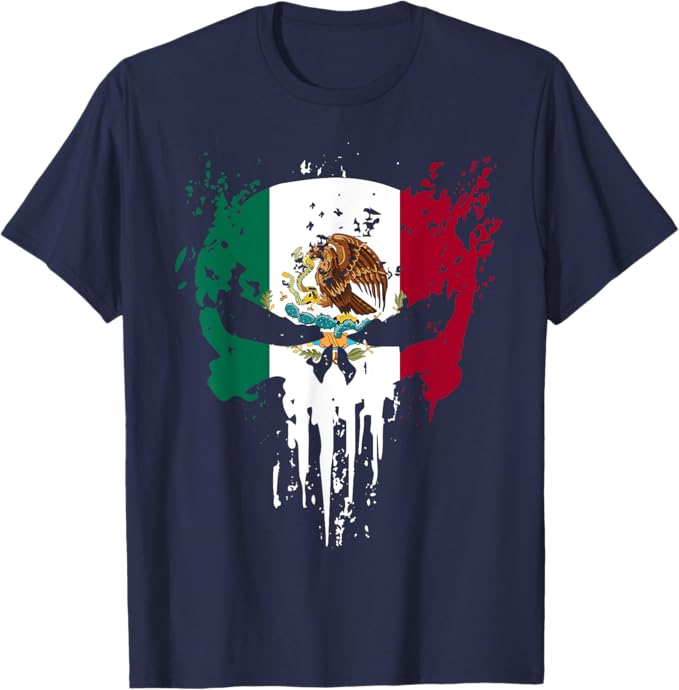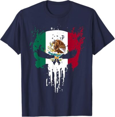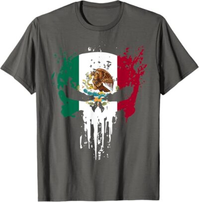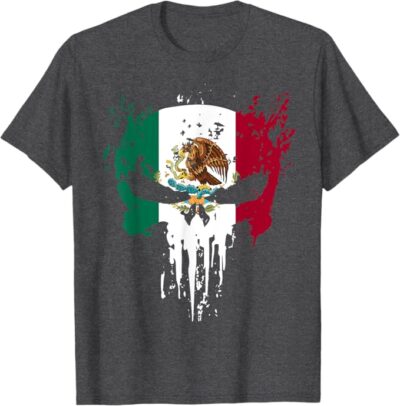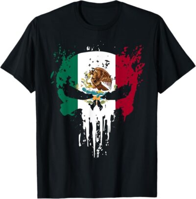 This “Mexican Flag as Skull” t-shirt combines the powerful imagery of the Mexican flag with a skull graphic, symbolizing strength, pride, and the bold spirit of Chicano culture.