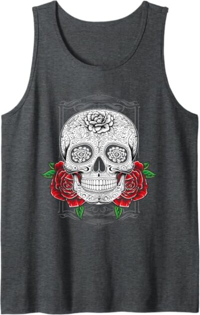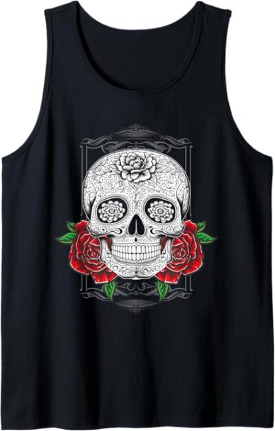 Mexican Calaveras Flower Skull Men Tank Top – Dia De Los Muertos Apparel