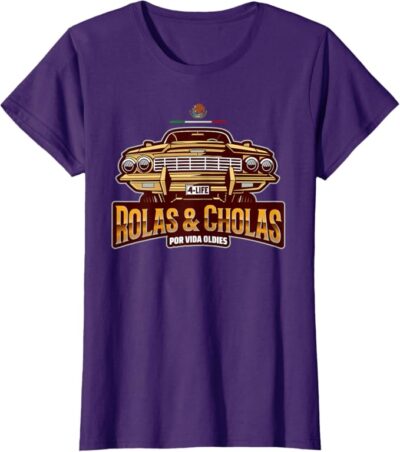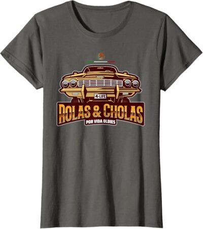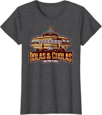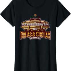 Chicano Culture Pride: This design is a bold statement for proud Mexican men and women who cherish the Chicano culture, featuring the iconic “Rolas & Cholas Por Vida” slogan to celebrate Mexican heritage and lowrider culture.