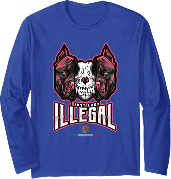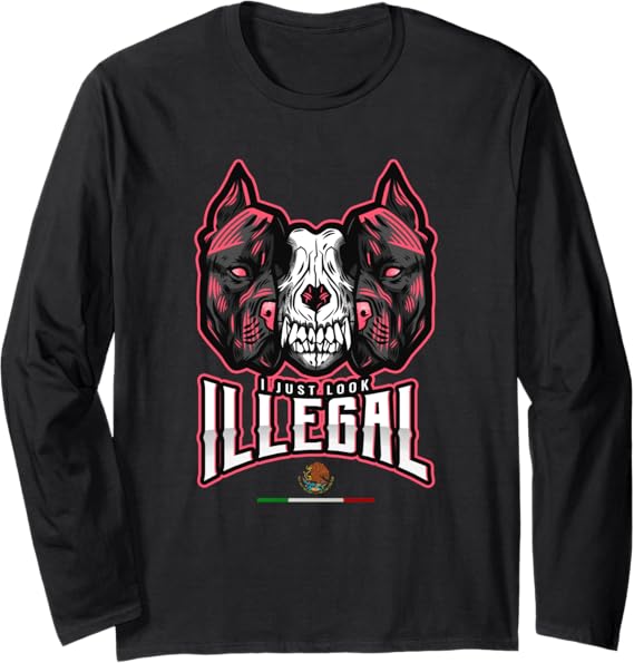 Chicano Style Long Sleeve T-Shirt – Creepy Mexican Dog Skull Design, ‘I Just Look Illegal’ Graphic