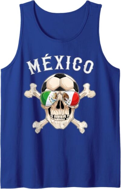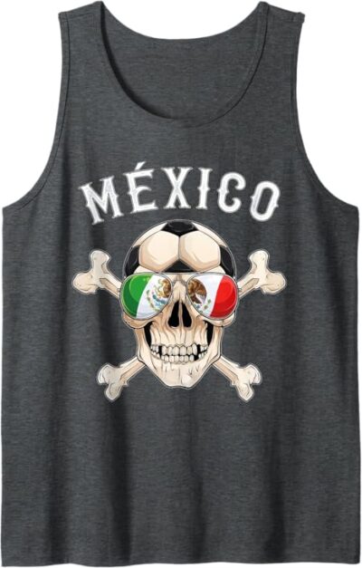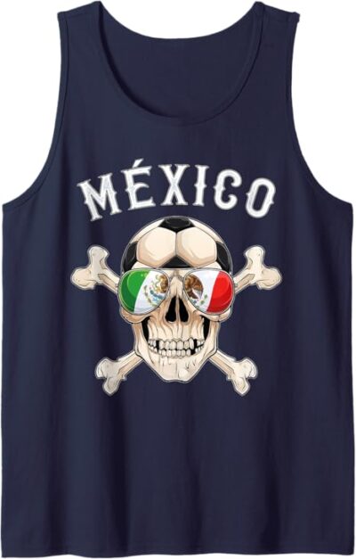 Mexican Pirate Soccer Fan Skull Men Tank Top with Flag Design