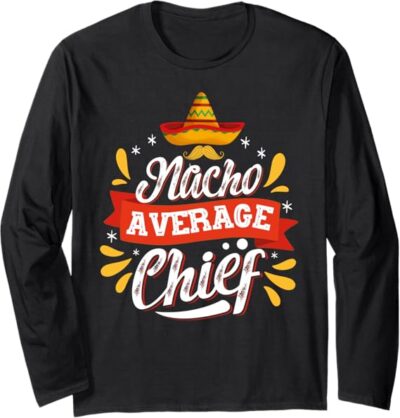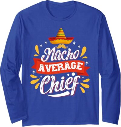 • Celebrate Cinco de Mayo in Style: Show off your Mexican pride with the “Nacho Average Chief” design, a fun and bold graphic that’s perfect for men and women celebrating Mexican heritage and culture.