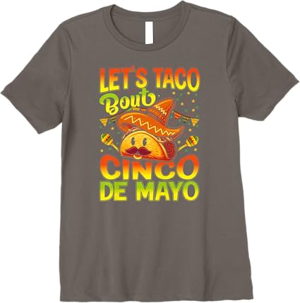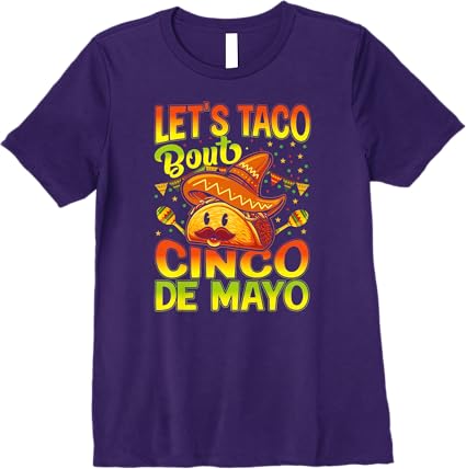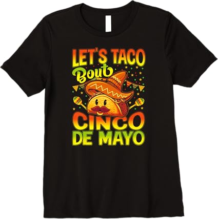 • Fun Cinco De Mayo Design: Celebrate Mexican culture and heritage with the playful “Let’s Taco Bout” design, perfect for both men and women. Show off your festive spirit at Cinco De Mayo parties or any casual gathering.
