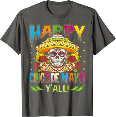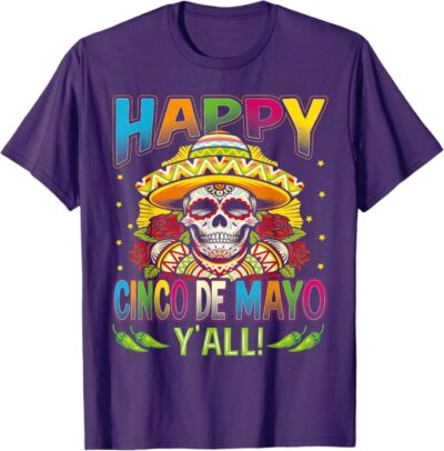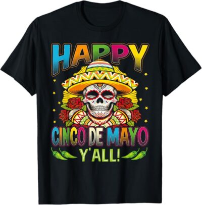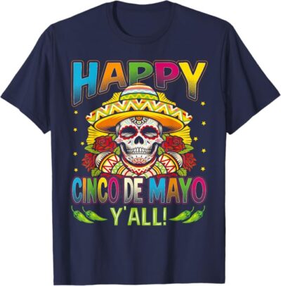 - Featuring a vibrant and eye-catching “Happy Cinco De Mayo Y’All” message, this shirt is ideal for parties, parades, or any Cinco de Mayo celebration.
