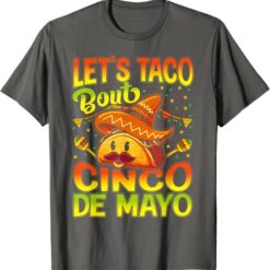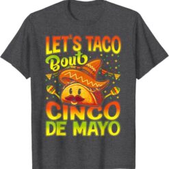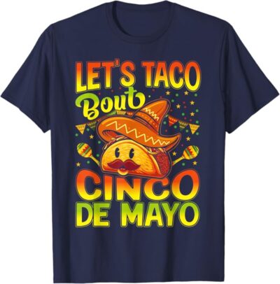 Fun Cinco De Mayo Design: Featuring a playful “Let’s Taco Bout” design, perfect for celebrating Cinco De Mayo in style. This design is ideal for men and women who want to showcase their festive spirit and love for Mexican culture.