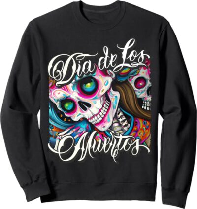 Colorful Día de los Muertos Catrina Skull Sweatshirt – Mexican Calaveras Design