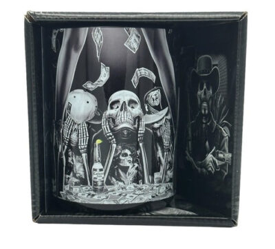 Fully decorated designer box, protects mug during shipping.