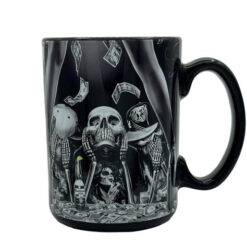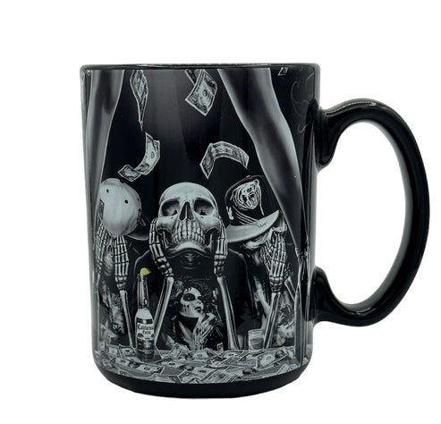 Black mug featuring artwork by artist David Gonzales.