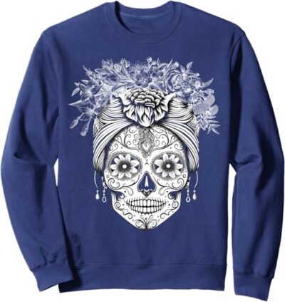 Celebrate Día de los Muertos: This Calaveras De Azucar design is a tribute to the rich traditions of Día de los Muertos, capturing the beauty and vibrancy of Mexican culture through intricate sugar skull artwork.