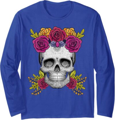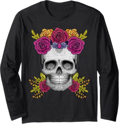 Dia de los Muertos Sugar Skull Long Sleeve T-Shirt – Mexican Day of the Dead Apparel
