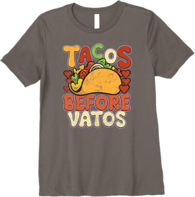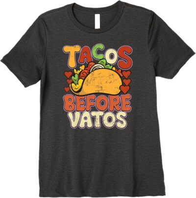 - Show off your love for tacos and Mexican culture with the “Tacos Before Vatos” t-shirt, featuring a fun and bold design that puts tacos above all else, a true statement for every taco lover.