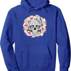 Floral Sugar Skull Pullover Hoodie – Day of the Dead Mexico Día De Los Muertos Design