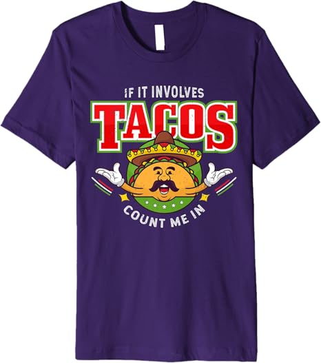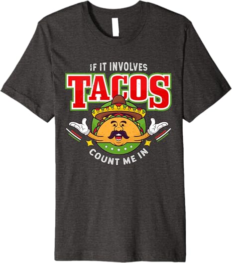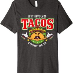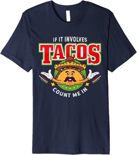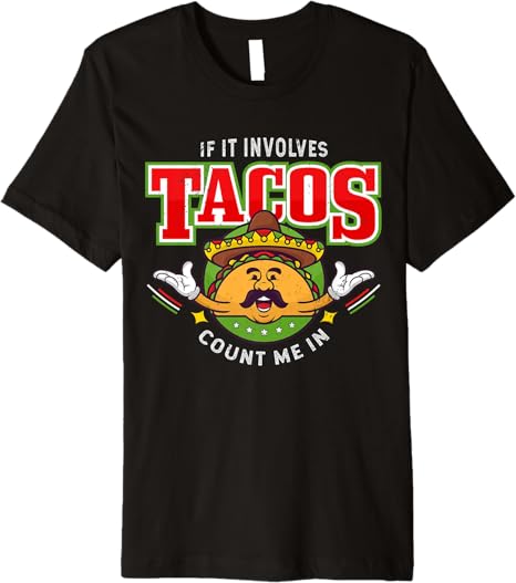 Funny Chicano Mexican Taco Men T-Shirt – ‘If It Involves Tacos Count Me In’ Premium Shirt