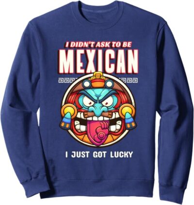 Funny Chicano Sweatshirt – ‘I Didn’t Ask to Be Mexican, I Just Got Lucky’ Design
