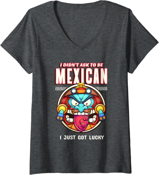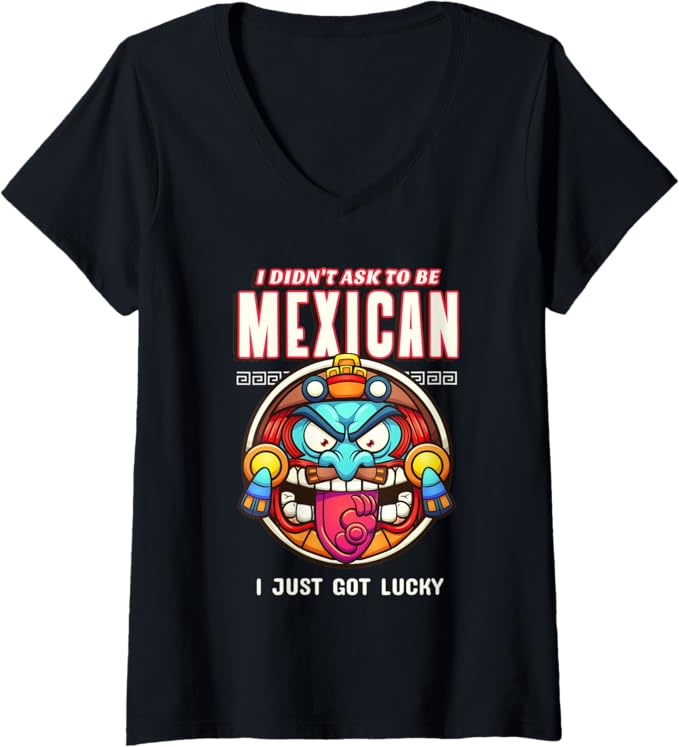 Funny Chicano V-Neck T-Shirt for Women – ‘I Didn’t Ask To Be Mexican, I Just Got Lucky’ Design
