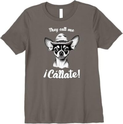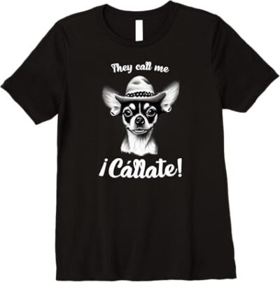 Funny Mexican Latina ‘Call Me Callate’ Chihuahua Womens Premium T-Shirt