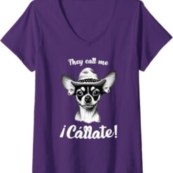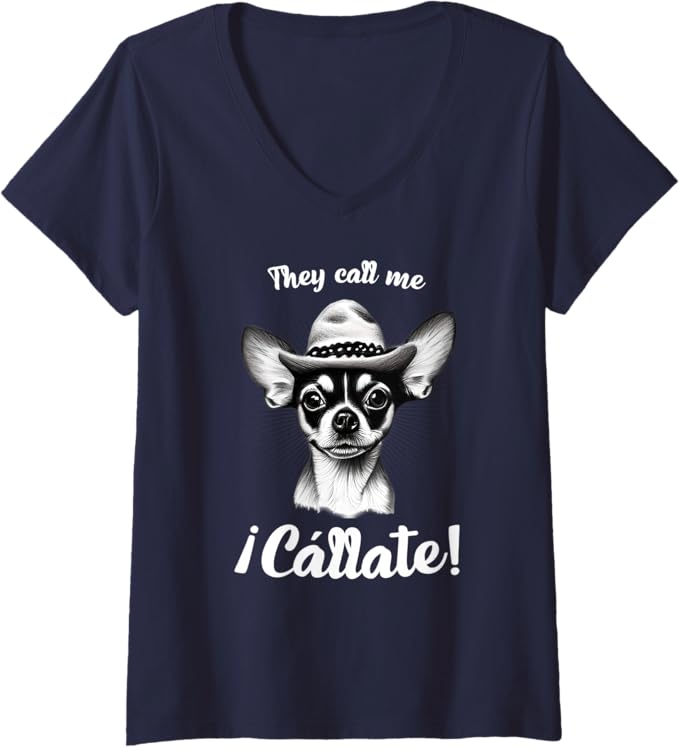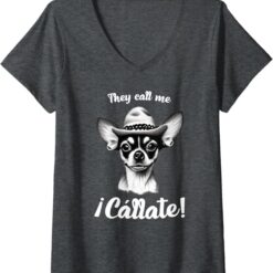 Funny Mexican Latina Chihuahua Mujer ‘Call Me Callate’ V-Neck Women T-Shirt