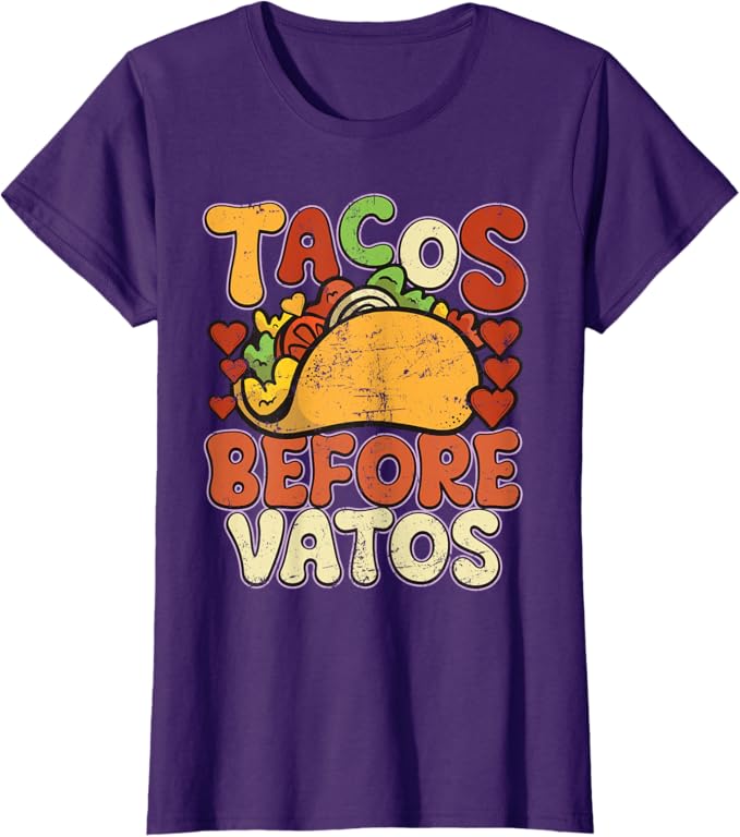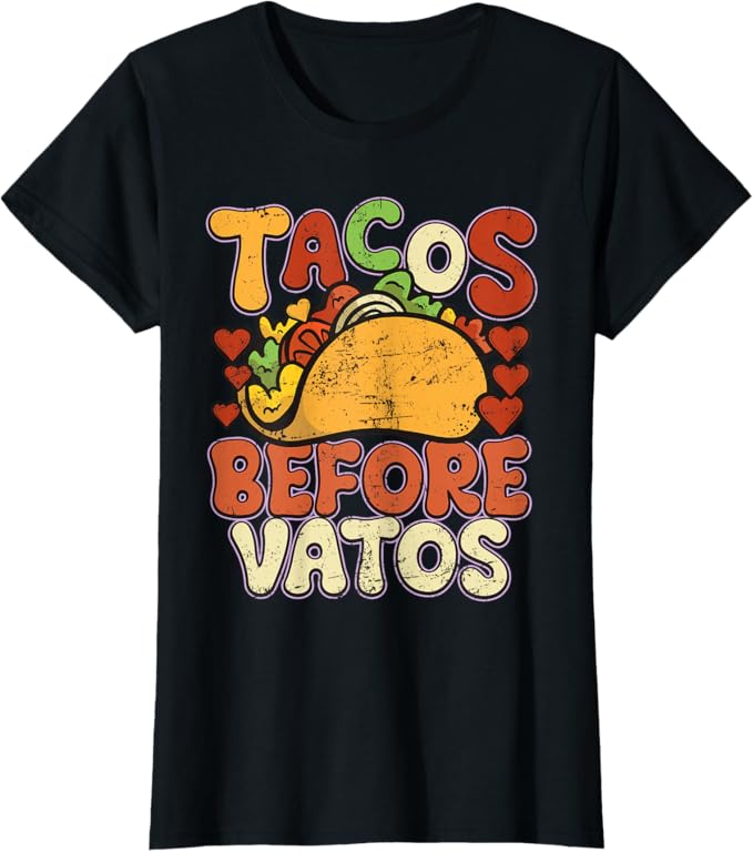 - Celebrate Chicano Pride: Show off your love for the Chicano culture with this bold and humorous “Tacos Before Vatos” design, perfect for proud Mexican men and women who appreciate their heritage and enjoy a good laugh.