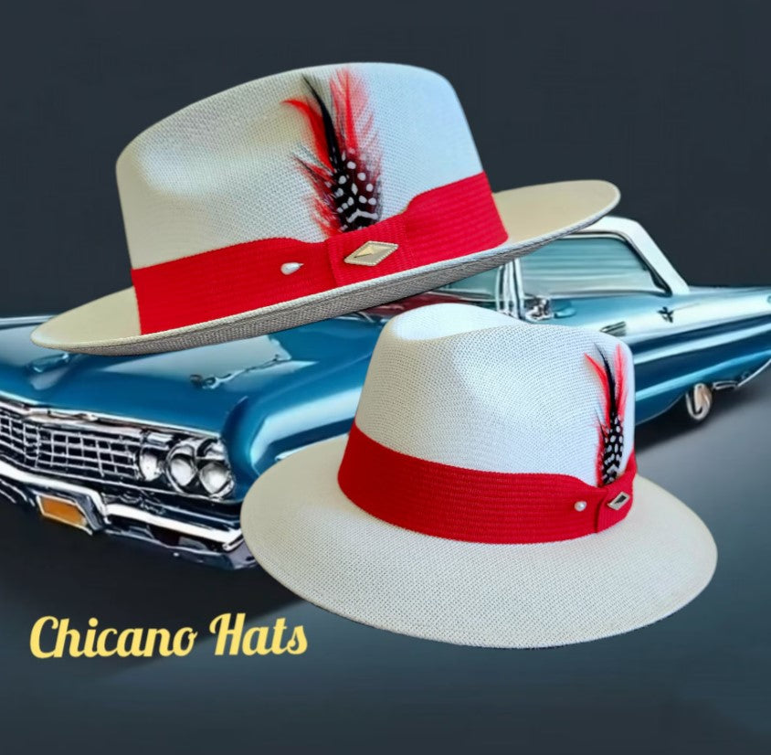 Goldline White Viejo Fedora Hat with Red Band – Flip Down or Up Style