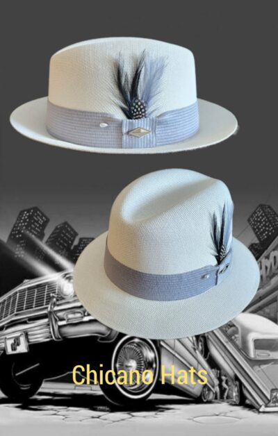 Goldline White/Gray Band Fedora Hat – Lowrider Flip-Up or Down Style