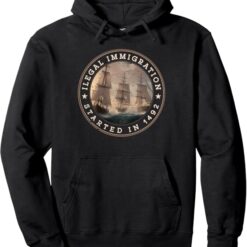 Bold and Thought-Provoking Design: This design adds a humorous twist to history, with the bold statement “Ilegal Immigration Started in 1492,” referencing the arrival of Columbus and the historical context of immigration in the Americas.