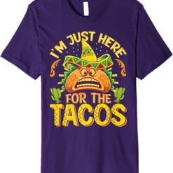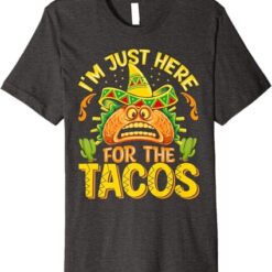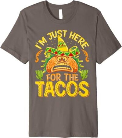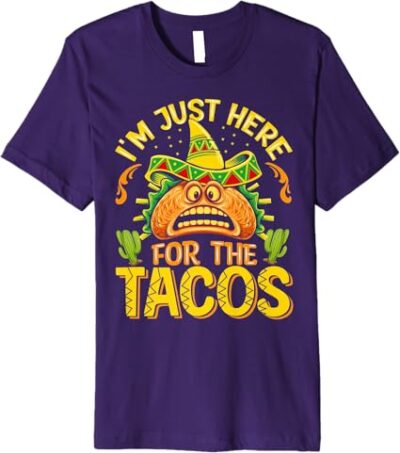 • Celebrate Cinco de Mayo in Style: Show off your love for Mexican culture with this fun “Just Here For Tacos” design, perfect for men and women who want to add some flair to their party outfit.