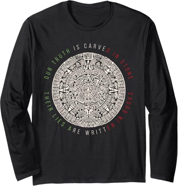 Mexican Aztec Mexica Calendar Long Sleeve T-Shirt – Our Truth Carved in Stone