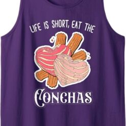- Fun and Playful Message: With the humorous slogan “Life Is Short Eat The Conchas,” it captures the joy and importance of savoring the simple pleasures in life, like enjoying delicious conchas, a beloved Mexican pastry.