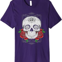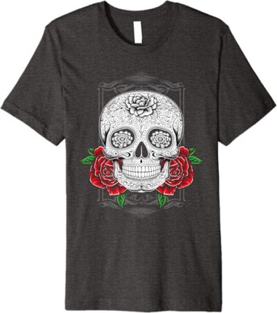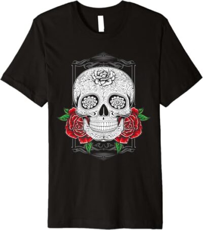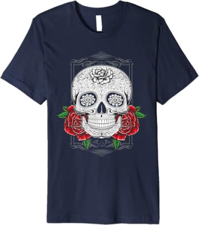 - Celebrate Heritage with Style: This Mexican Day of the Dead Sugar Skull design embodies the vibrant spirit of Día de los Muertos, perfect for those who take pride in Mexican and Chicano culture.